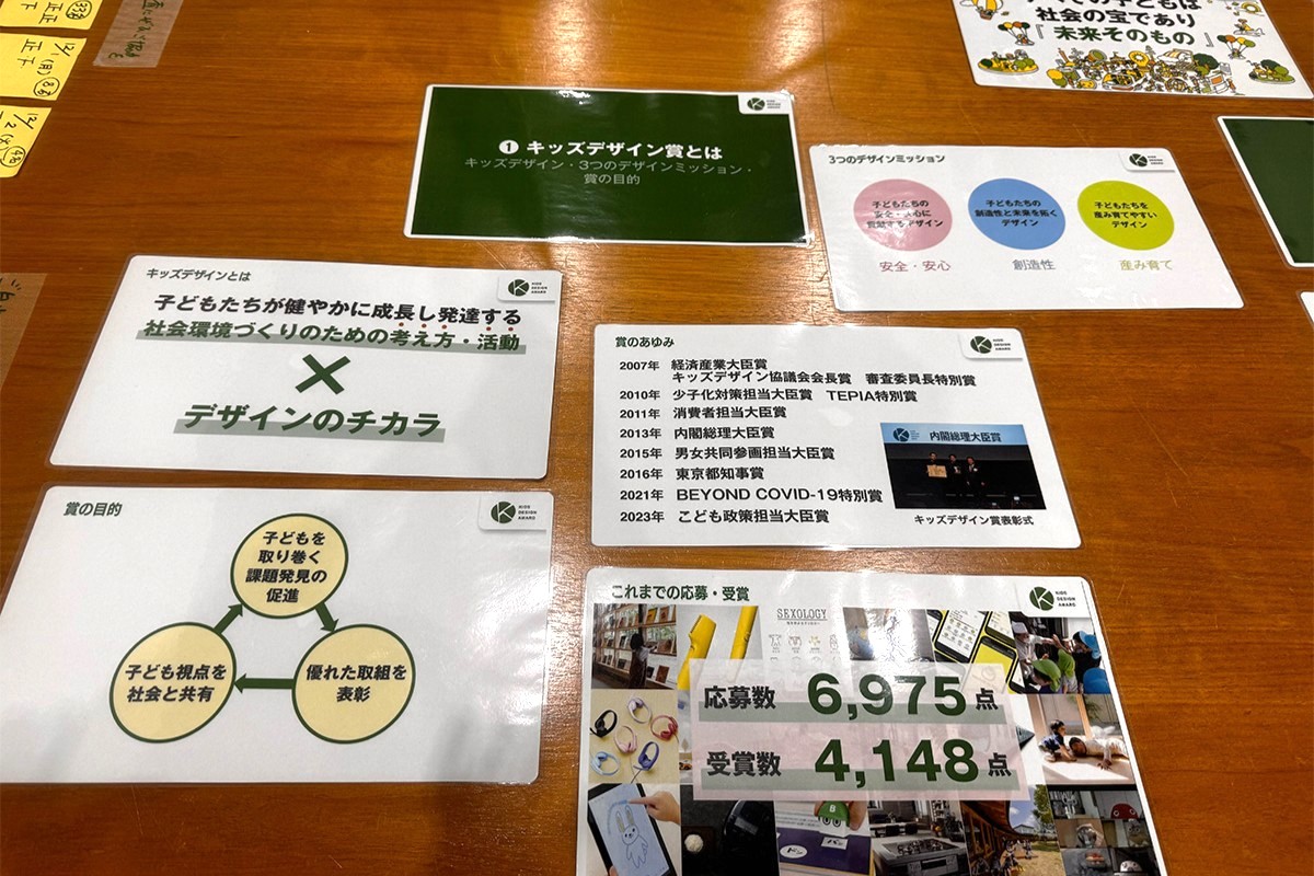 展示会ではキッズデザインの概要や賞の目的、ミッションを紹介しました。